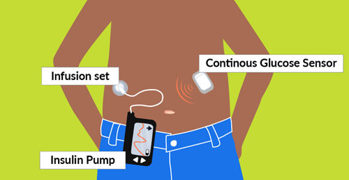 A closed-loop system is a pump and a continuous glucose monitor that can “talk to each other”. The sensor communicates all changes in blood glucose to the pump which then automatically adjusts the basal rate of insulin infusion